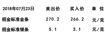 | 2018.07.23日 基礎金價:270.2元/克,回購價:266.6元/克 | 深圳市招金金屬網絡交易有限公司 | 2018-07-23 |